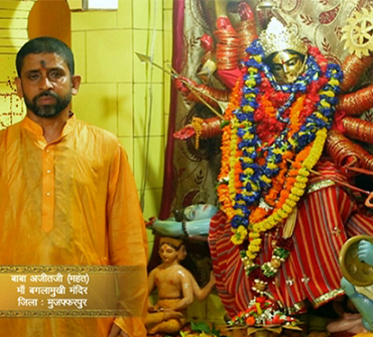 It is situated near the Hathi Chowk in Muzaffarpur, Bihar. This temple is also known as "Siddh Peeth" as it fulfills wishes of devotees. During Navratri, many tantriks come here and it becomes the fair of tantriks. Very few people know that the statue of Baglamukhi is made-up of Ashtadhatu (eight metals). 282 years ago, the ancestors of Mahanth Ajit Kumar Prasad established this temple. The statue of Maa Baglamukhi was made in Kolkata. Maa baglamukhi is the demolisher of enemies. This temple has its own Mashan to feed the Devi Maa with wine, fish, etc. people from different places come to this place to get rid of enemies, occult activities (kala jadu) and court cases. All these problems can be solved by conducting havan at this place.